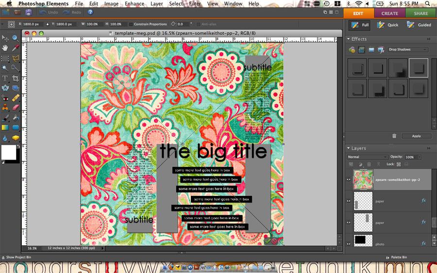 While some readers are well-versed in the use of these time-saving files, I get asked often for more specifics on using them. This tutorial will show you step by step how to use layered template files. My example will show PSE 6 for Mac, but the steps are the same for PC versions and for Photoshop.