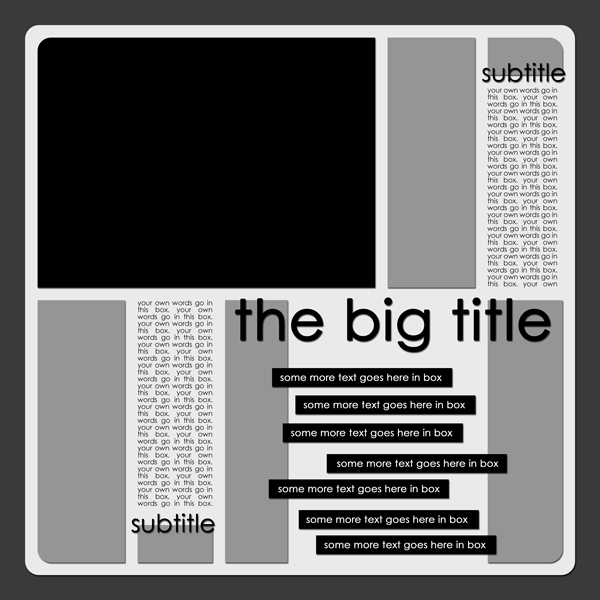 Step 6. Repeat this step will all shapes you wish to fill with papers. Edit the journaling boxes and add further embellishments as desired. Delete any placeholders as necessary.