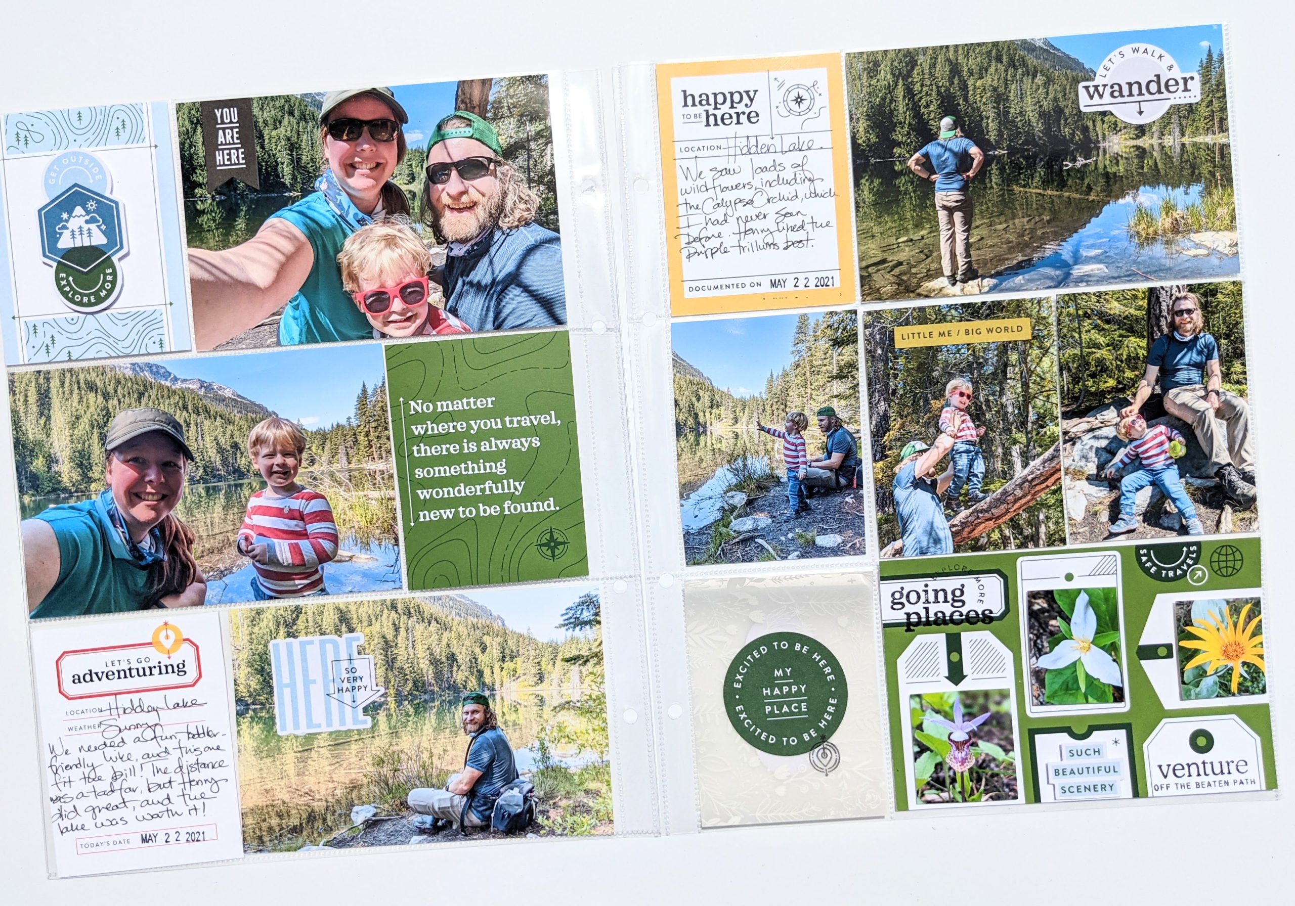 Our creative team was inspired by Amy Alphin’s love of stamps to create their own pages and use a variety of techniques.
