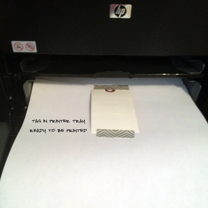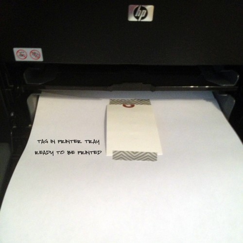 6. I then attach the tag to the paper with some washi tape, and run it through the printer.