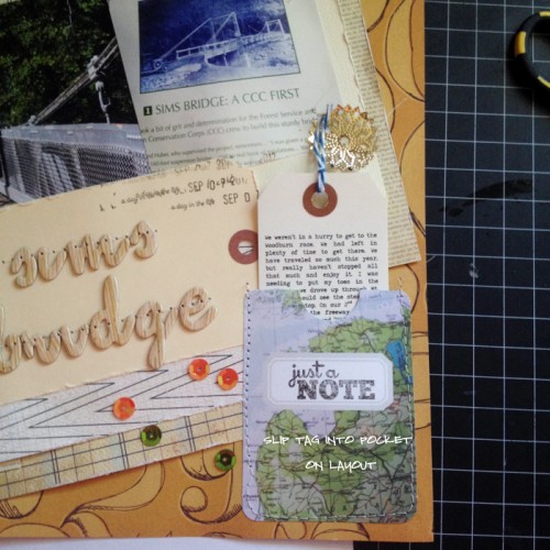 I dont struggle with telling the story behind the pictures, mostly I struggle with page titles – most of the time I just dont have titles. I always manage to tell a little something abt the photos, and always date them. I especially like the tag in the map paper pocket idea – thank you for the inspiration.