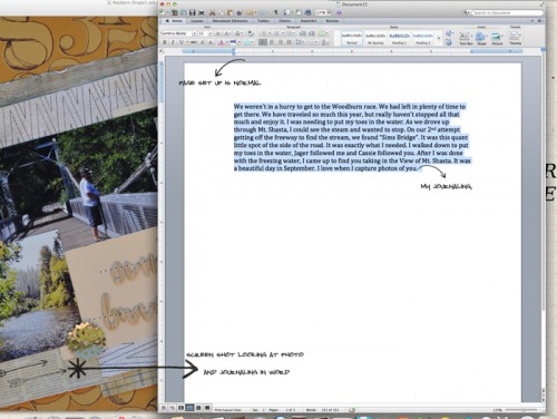 To make up for less journaling on my pages, I have a few other ways I incorporate the story into my layouts. My title always seems to tell you what I have done or where I have gone. Also I like to date the layout, particularly the day the photo was taken. It’s very easy to see when the photo was taken, because our phones and digital cameras keep track of that in the metadata.