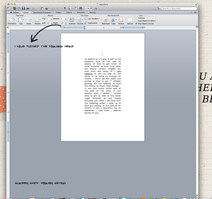 4. I then change the font, size of text and start playing with the margins.