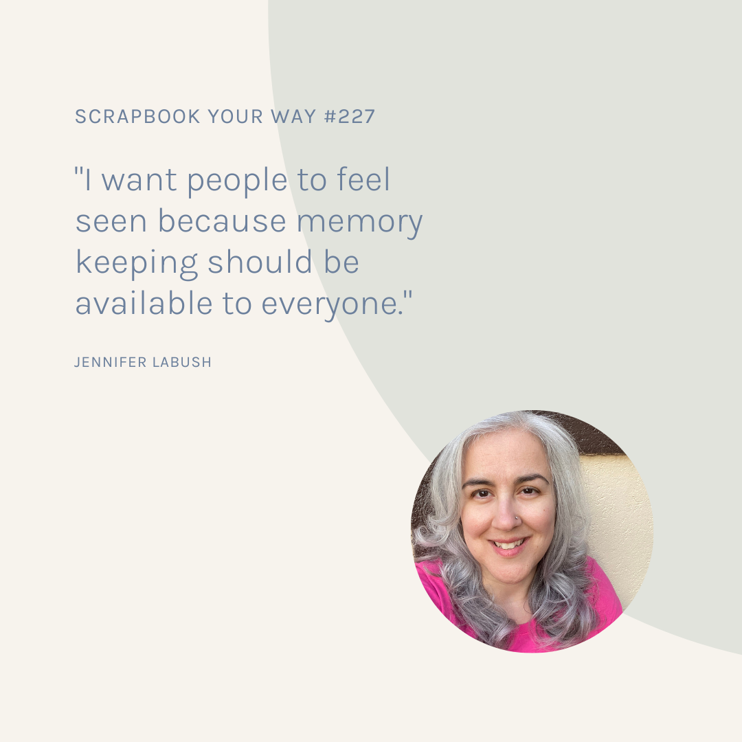 This is episode 227. In this episode I'm chatting with Jennifer Labush about the products she creates for paper, hybrid, and digital scrapbookers. We focus on how she brings both humor and substance to designs that reflect her personality.