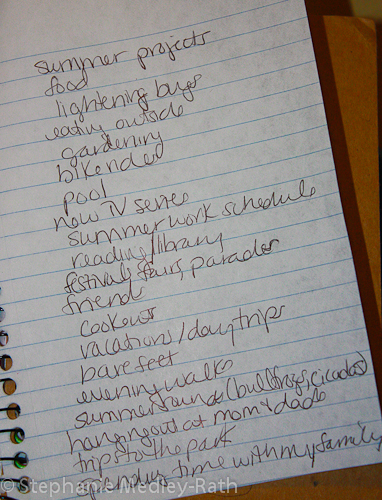 I’ve included things like summer projects, eating outside, and reading. I’m not going to list all the items here, because I want you to come up with your own list that is special to you.