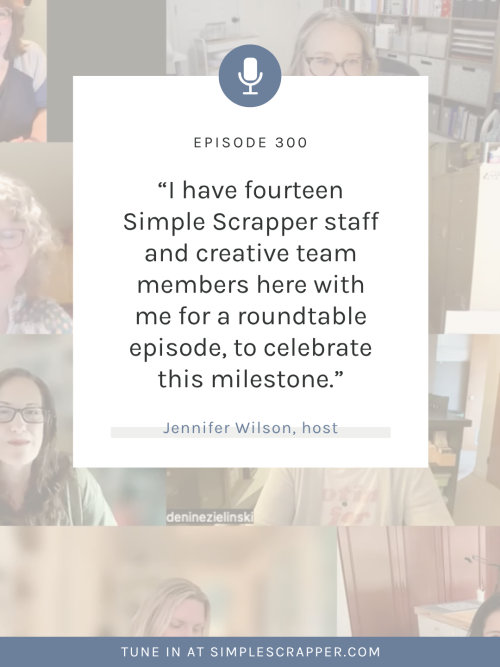 Jennifer Wilson: [00:00:00] Welcome to Scrapbook Your Way, the show that explores the breadth of ways to be a memory keeper today. I'm your host, Jennifer Wilson, owner of Simple Scrapper and author of the New Rules of Scrapbooking. This is episode 300. In this episode, I'm joined by 14 Simple Scrapper staff and team members to celebrate a podcast milestone.