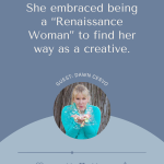 Dawn Cervo: Yeah. Very interesting. I love talking about creativity for sure. And honestly, as a child, I didn't believe that I was creative. Even as a young adult, I didn't think I was creative. I wasn't artsy. But, I mean, I kind of did the gamut of crafts as I came into adulthood. So, you know, it started with cross stitch and then tried knitting and, you know, got into tole painting in the day and, you know, all that.