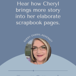 Cheryl Ashcraft has been a fixture of the digital scrapbooking community for well more than a decade. Known for her layered and maximalist style as both a scrapbooker and digital designer, Cheryl’s style is easily recognized by peers. In this episode you’ll learn more about her creative journey and process.