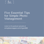 Number two here might be a little controversial, and I've probably said it before here on the podcast, but simple photo management can be achieved [00:07:00] by managing a fewer number of photos. So what that can look like is taking a fewer number of photos, and I understand how strange that can seem for a memory keeper for someone who is often the family member in charge of taking the photos, sometimes even asked by others to take the photos because we are photo takers. But you may have found that the availability of space, the readiness of having a camera in your hand almost at all times, means that you're taking more and more. So it may be that you can streamline your photo management by intentionally taking fewer. And one way that I've been able to do that is to make a mental shift at some point when I'm taking photos to more being in the moment.