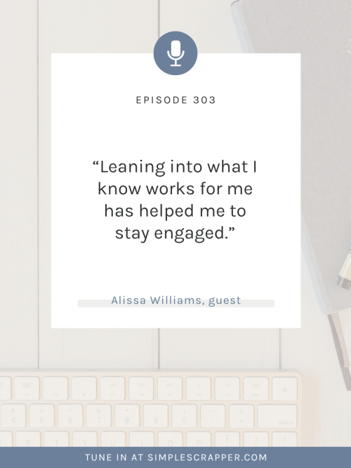 Jennifer Wilson: Welcome to Scrapbook Your Way, the show that explores the breadth of ways to be a memory keeper today. I'm your host, Jennifer Wilson, owner of Simple Scrapper and author of the New Rules of Scrapbooking. This is episode 303. In this episode, I'm catching up with Alissa Williams about our memory keeping and memory making of late.