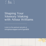 The natural seasons of a year, as well as the broader seasons of our lives, shape the stories we have to tell… and the time we have to tell them. In this episode I’m catching up with Alissa Williams about our current scrapbooking interests and the need for adaptation to each new season. Our discussion includes personal experiences, recent surprises, and decisions we’ve made about the future.
